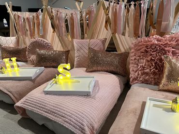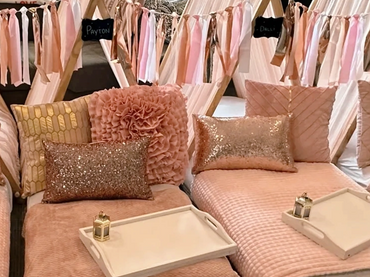 Our sleepover tent rentals include delivery, setup, and styling the day of your event and pickup/takedown the following day!